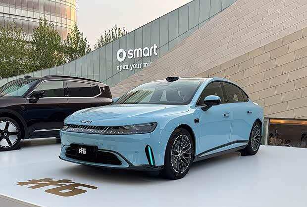 另一款首发车型smart精灵#6 EHD采用轿跑造型,延续奔驰“感性·灵锐”设计语言,灵感来源于鲨鱼。前大灯与中央仿生鲨吻式贯穿风道相连,前包围凸显运动感,车顶配备激光雷达。前后大灯共内嵌10666颗LED毫米级微点阵,搭载智感交互光阵PixelTalk系统,支持20多种预置灯效与自定义手绘灯语。