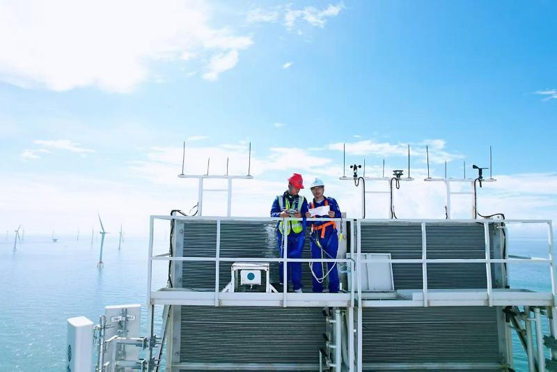硬核5G基站矗立于百米高空的海上风机顶端。黄忠源摄