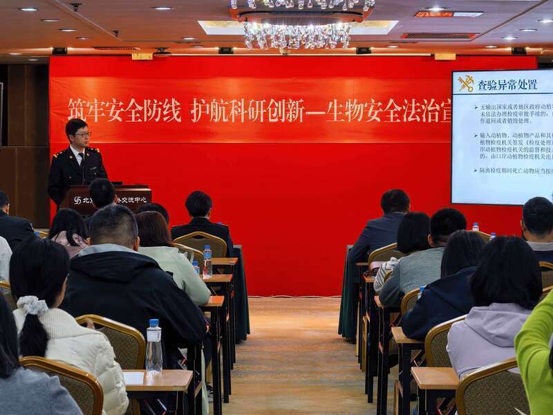 北京海关聚焦国门生物安全重点领域,针对高等院校科研群体特殊物品和生物材料进出境需求集中、法规交叉、专业性强等特点,统筹法规、卫生检疫、动植物检疫、邮递物品监管等领域的业务骨干,将《中华人民共和国国境卫生检疫法》《中华人民共和国进出境动植物检疫法》《中华人民共和国生物安全法》及相关法规规章“打包”送进校园,实现“一揽子送法、跨领域解读、一站式解答”,让科研人员在校园内就能享受到便捷、专业的政策服务,有效提升普法的精准度和实效性。